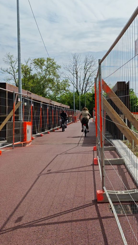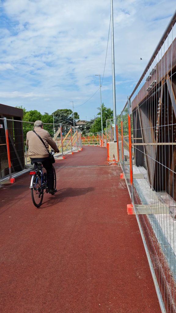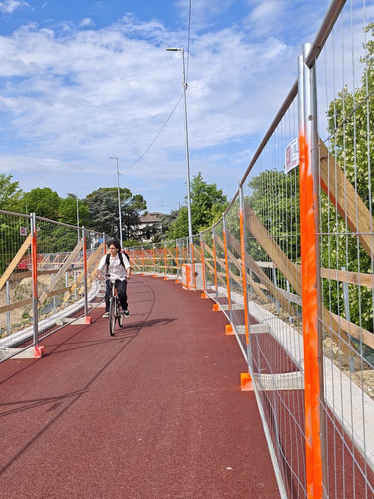 Da questa mattina biciclette e pedoni possono transitare sulla nuova passerella finalmente aperta per rendere più sicura la mobilità dolce sia ora in fase di cantiere che successivamente, con il tram in funzione.